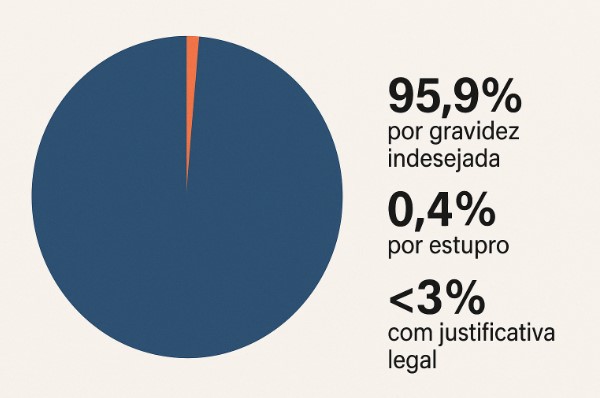 Mesmo em estados onde se permite apresentar múltiplos motivos para justificar o aborto, a esmagadora maioria das mulheres aponta razões ligadas ao medo, ao desconforto social, à rejeição do filho — e não à violência sexual ou risco de morte.