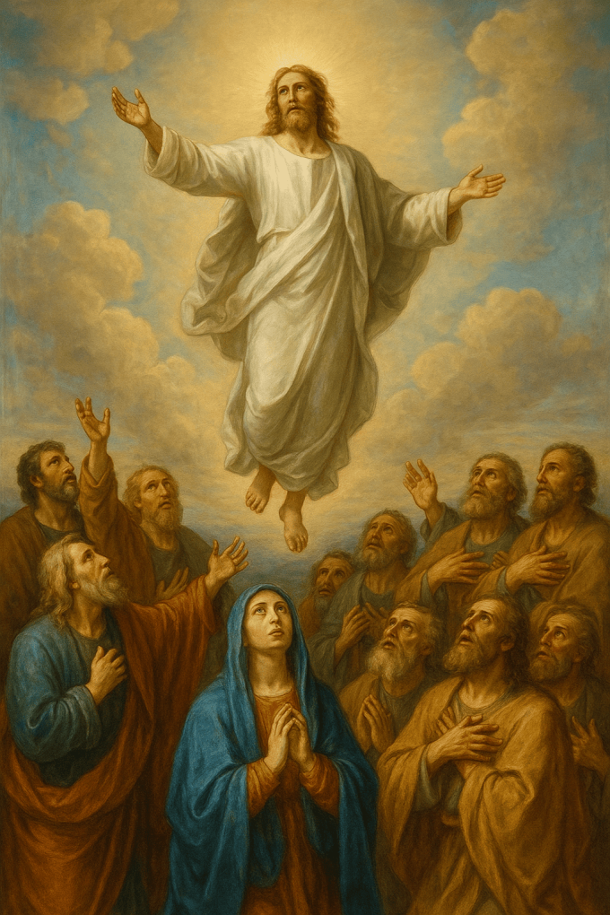 Segundo os Evangelhos e a Tradição, quarenta dias após a Ressurreição, Nosso Senhor Jesus Cristo foi elevado ao Céu diante de seus discípulos, em corpo e alma.