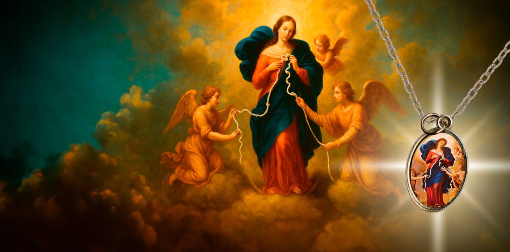 Receba a Medalha Benta de Nossa Senhora Desatadora dos Nós e confie a Ela os nós mais difíceis da sua vida.
