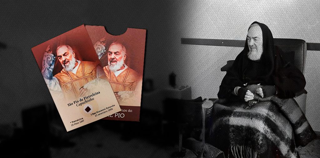 Tenha em suas mãos um tesouro espiritual: um fragmento de tecido que tocou a poltrona onde Padre Pio deu seu último suspiro.