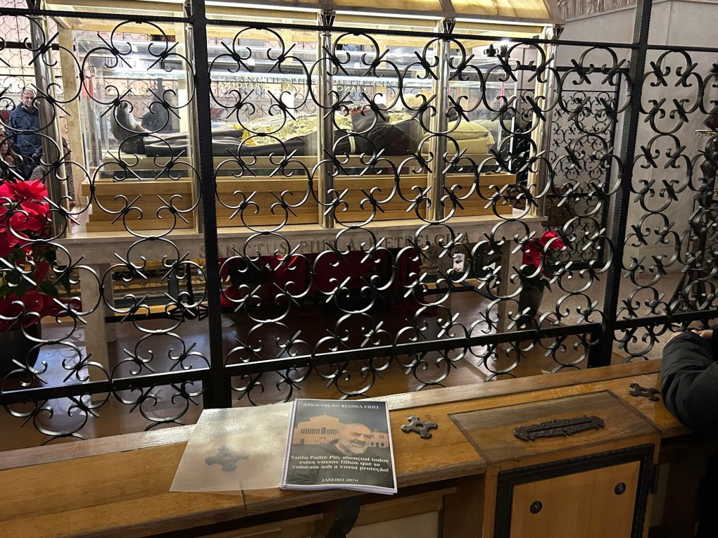 Em seguida, em oração, as intenções foram levadas até junto do corpo incorrupto do Santo Padre Pio.