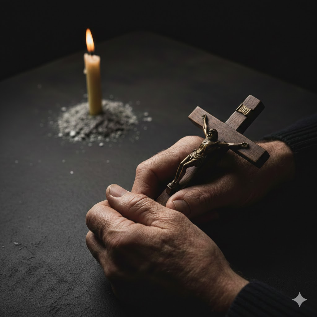 Santíssima Virgem, Mãe das Dores, dai-me um coração que saiba chorar os próprios pecados e reparar as ofensas contra o Vosso Divino Filho. Que estas cinzas sejam o início de uma conversão real. Amém.