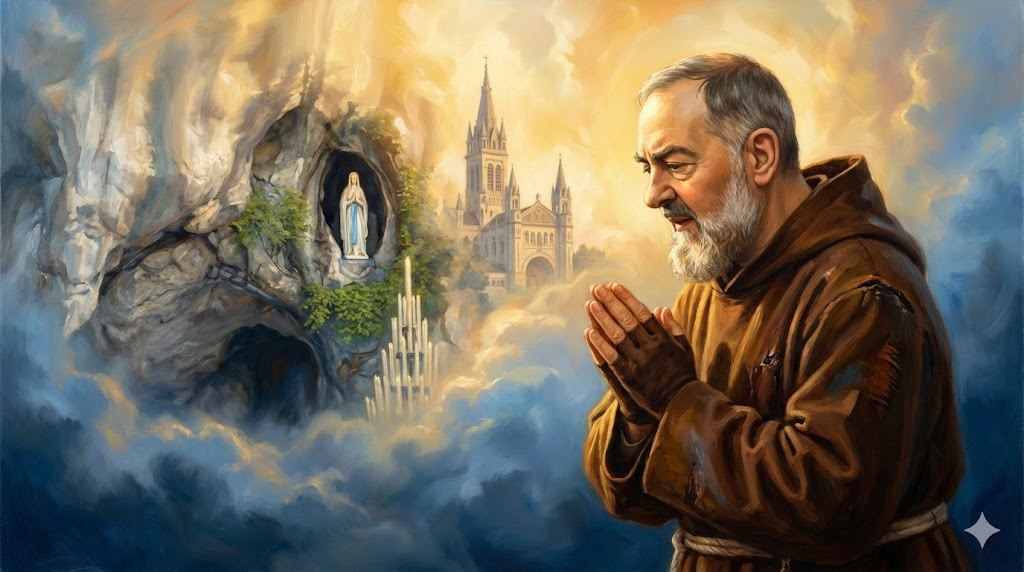 O Padre Pio é este santo “enviado por Deus” para tempos difíceis. Ele nos ensina que a distância física não é barreira para a Graça e que Deus continua operando milagres.