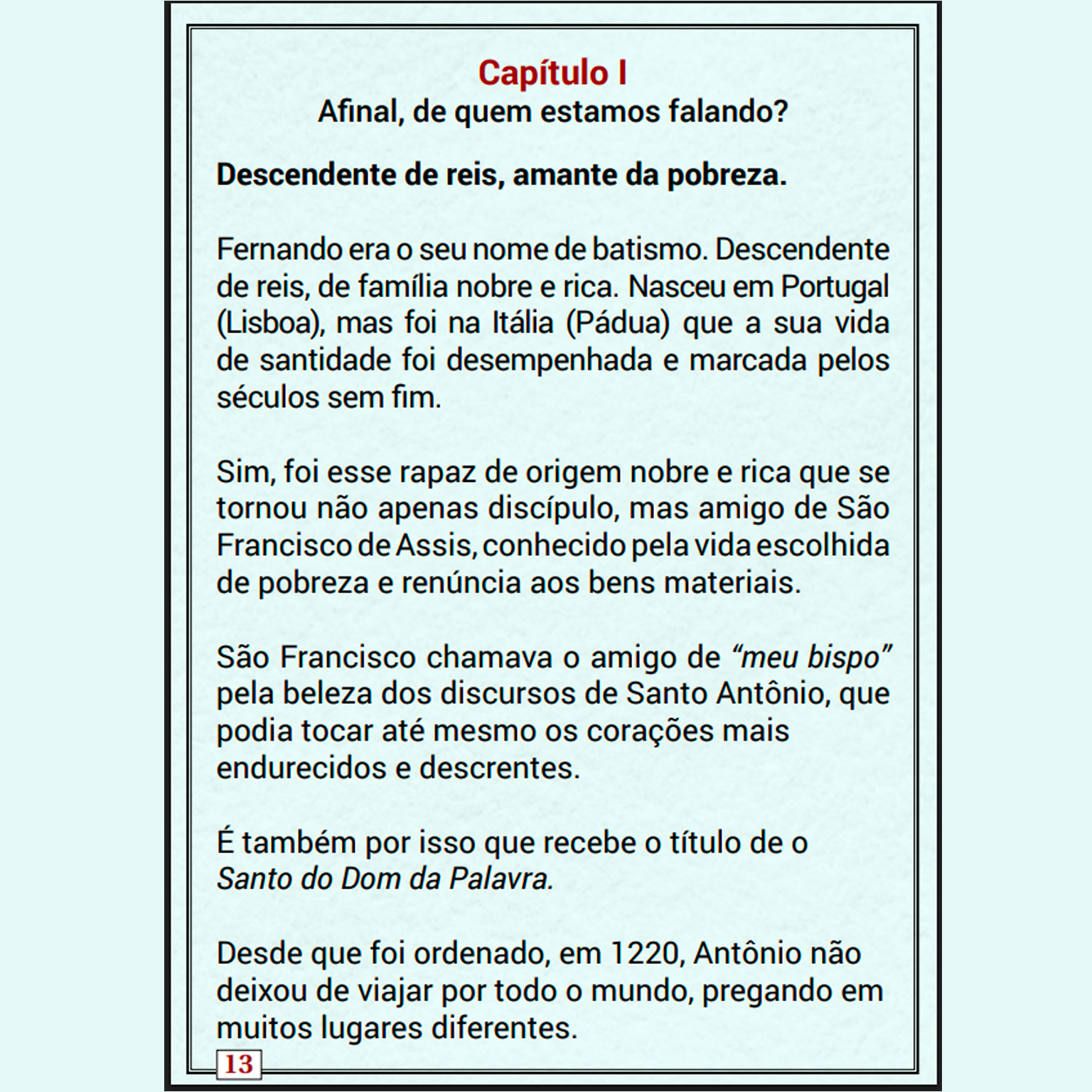 Este livro reúne orações e relatos de seus milagres extraordinários: ressurreições, aparições do Menino Jesus e até a revelação de seu rosto pouco conhecido.