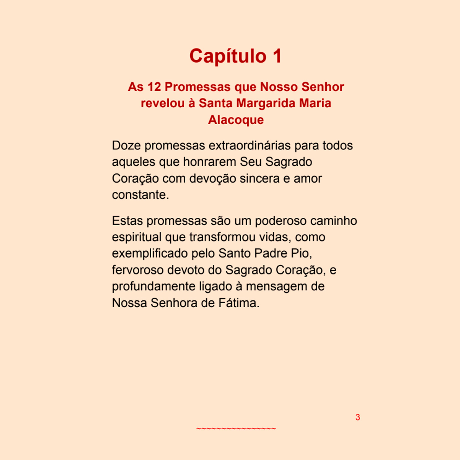 Esta obra apresenta cada promessa aplicada à vida concreta dos fiéis, mostrando como o Sagrado Coração pode curar feridas, santificar famílias e mudar destinos.