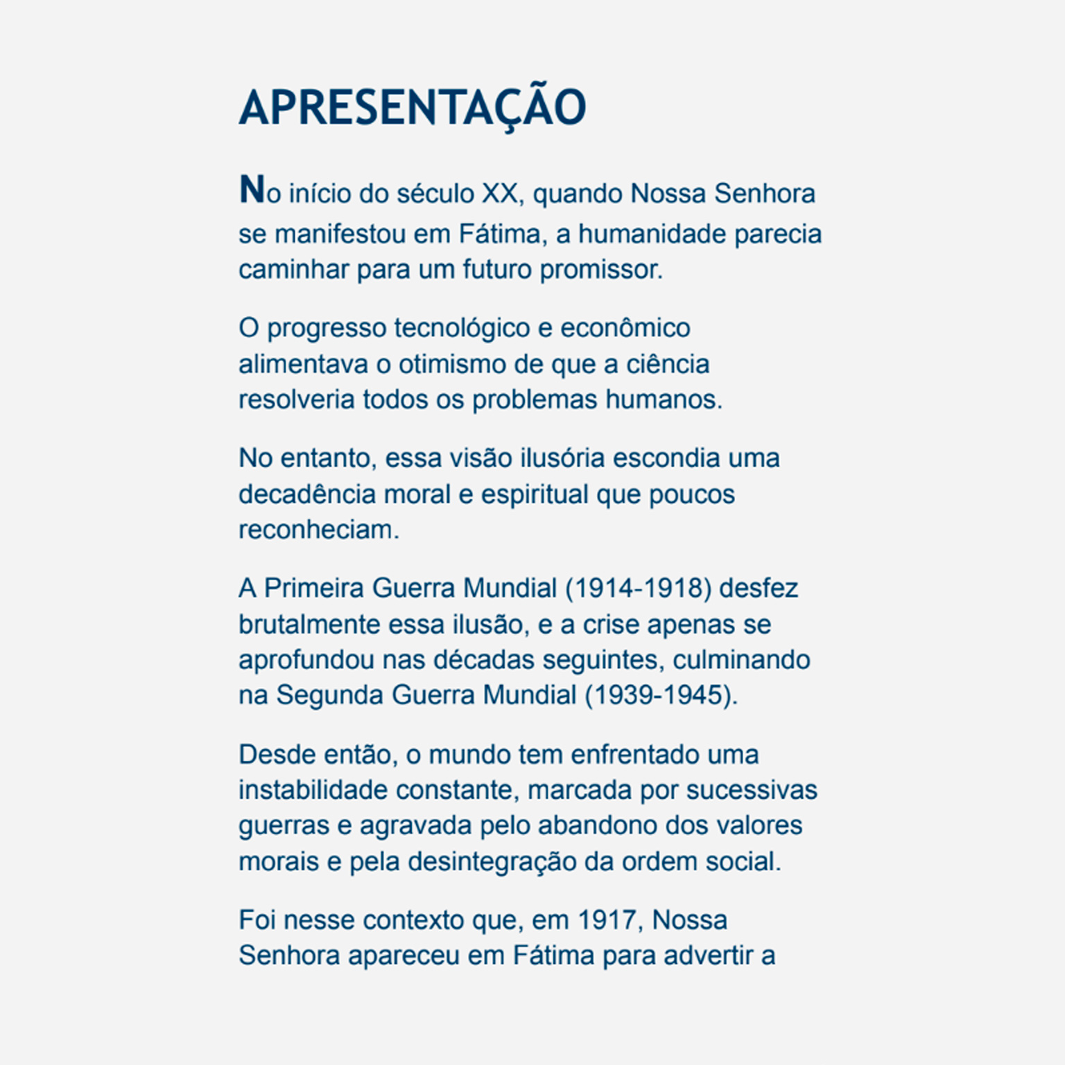 Para quem deseja luz em meio à escuridão espiritual, e alcançar a paz prometida por Nossa Senhora de Fátima.