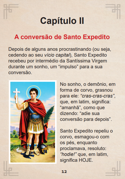 Santo Expedito esmagou o corvo de Satanás com decisão e coragem, proclamando “hoje!”, e tornou-se sinal da prontidão que Deus espera de nós.