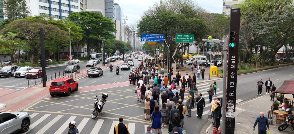 Centenas de fiéis tomam a Avenida Paulista para rezar pelo fim do aborto e pela proteção das famílias brasileiras.