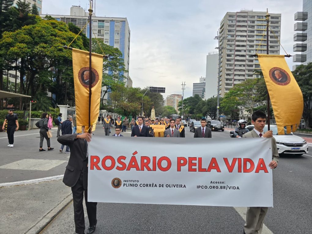Centenas de fiéis tomam a Avenida Paulista para rezar pelo fim do aborto e pela proteção das famílias brasileiras. Um